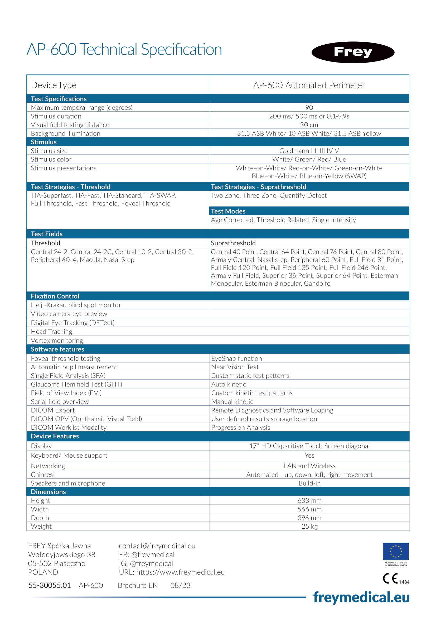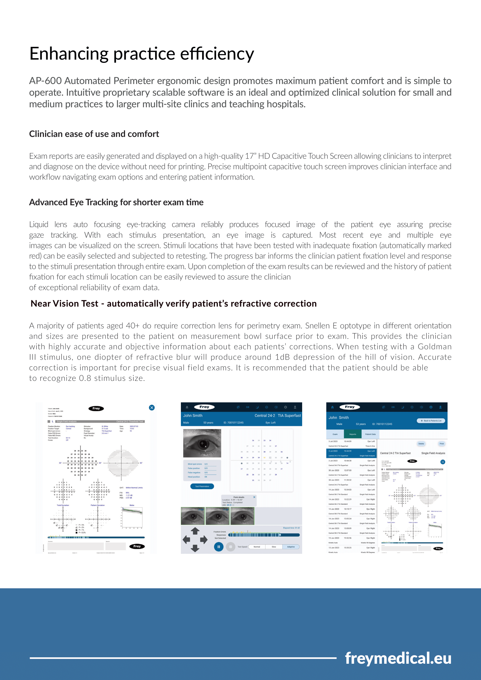 The PalmScan AP600 is an advanced, compact visual field analyzer designed for rapid, precise, and user-friendly perimetry testing. With a modern, portable build and intuitive software interface, it offers a seamless experience for both clinicians and patients.