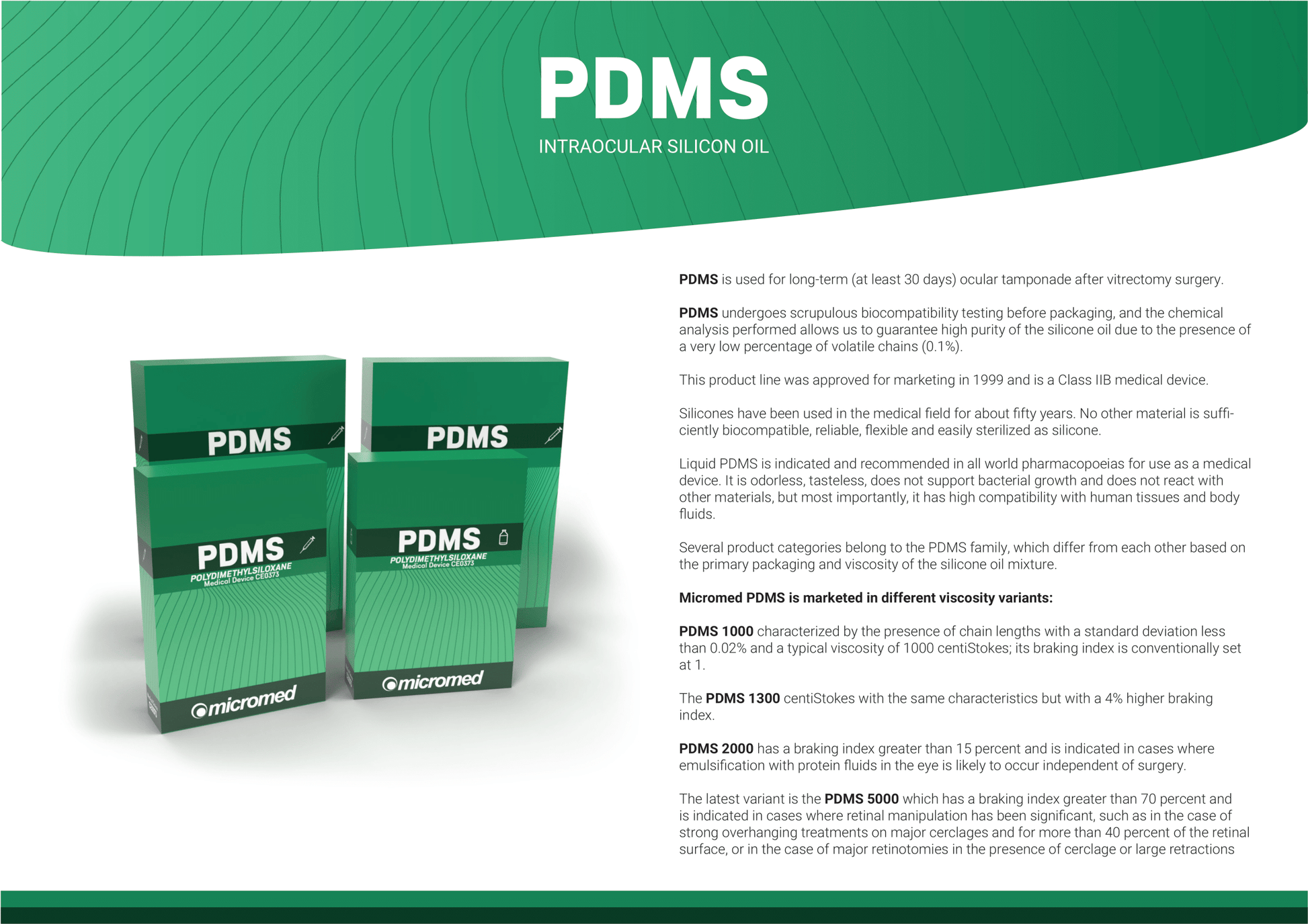 PDMS is used for long-term (at least 30 days) ocular tamponade after vitrectomy surgery.