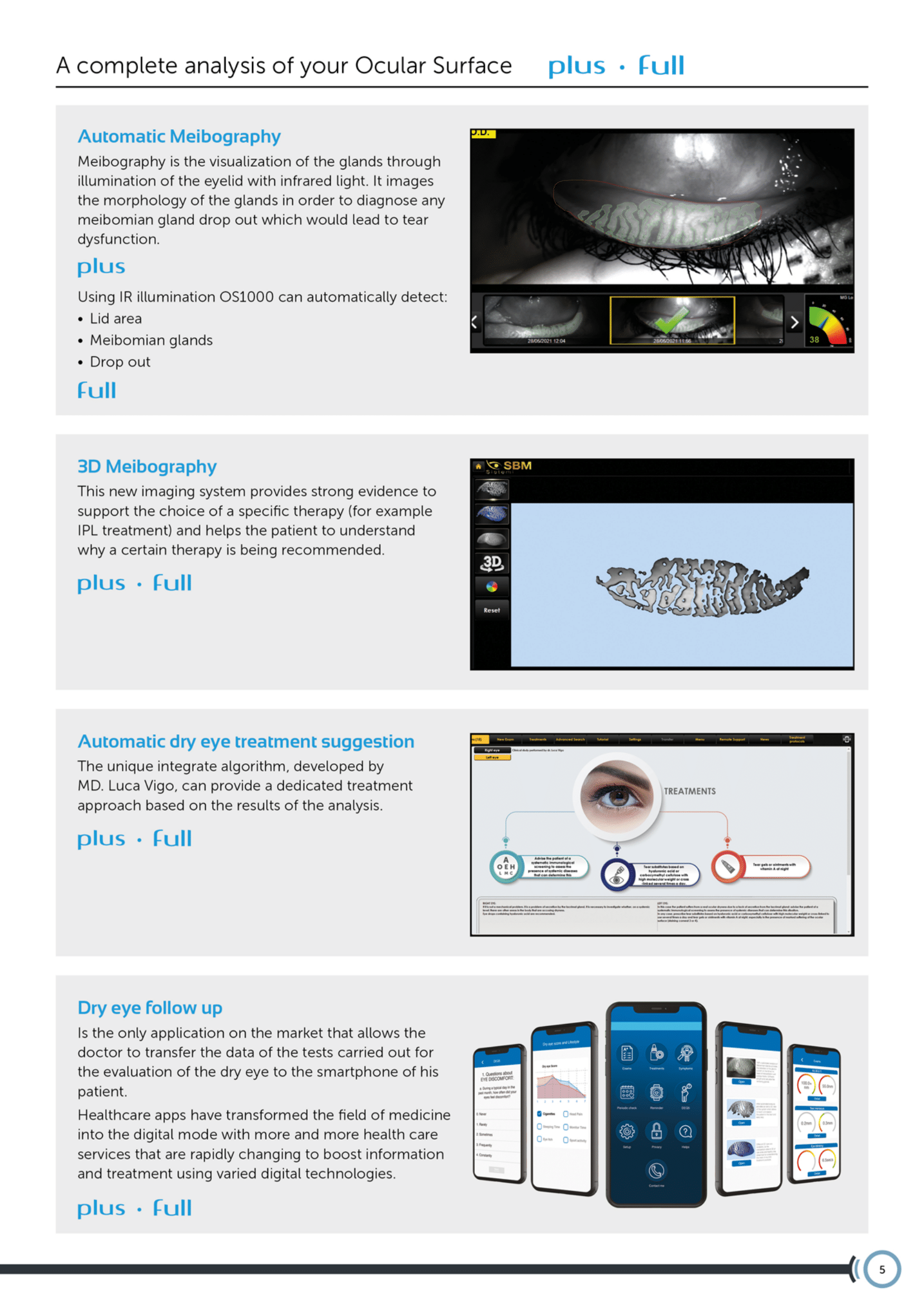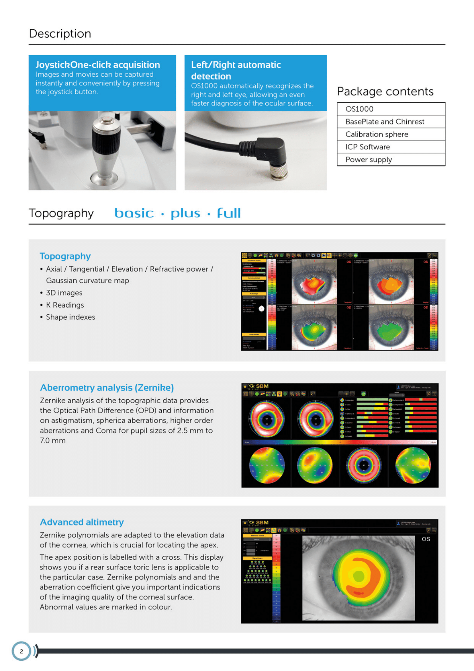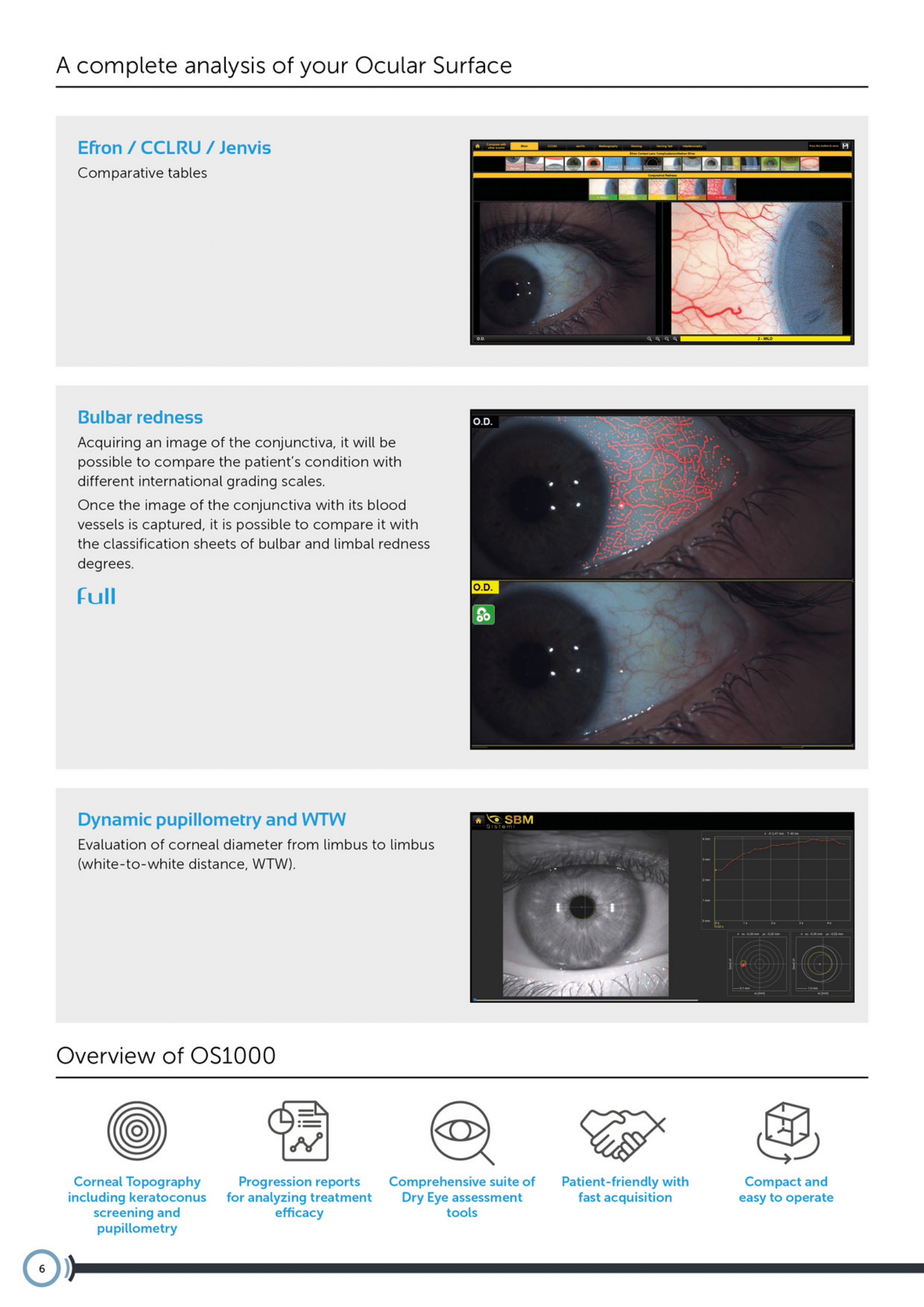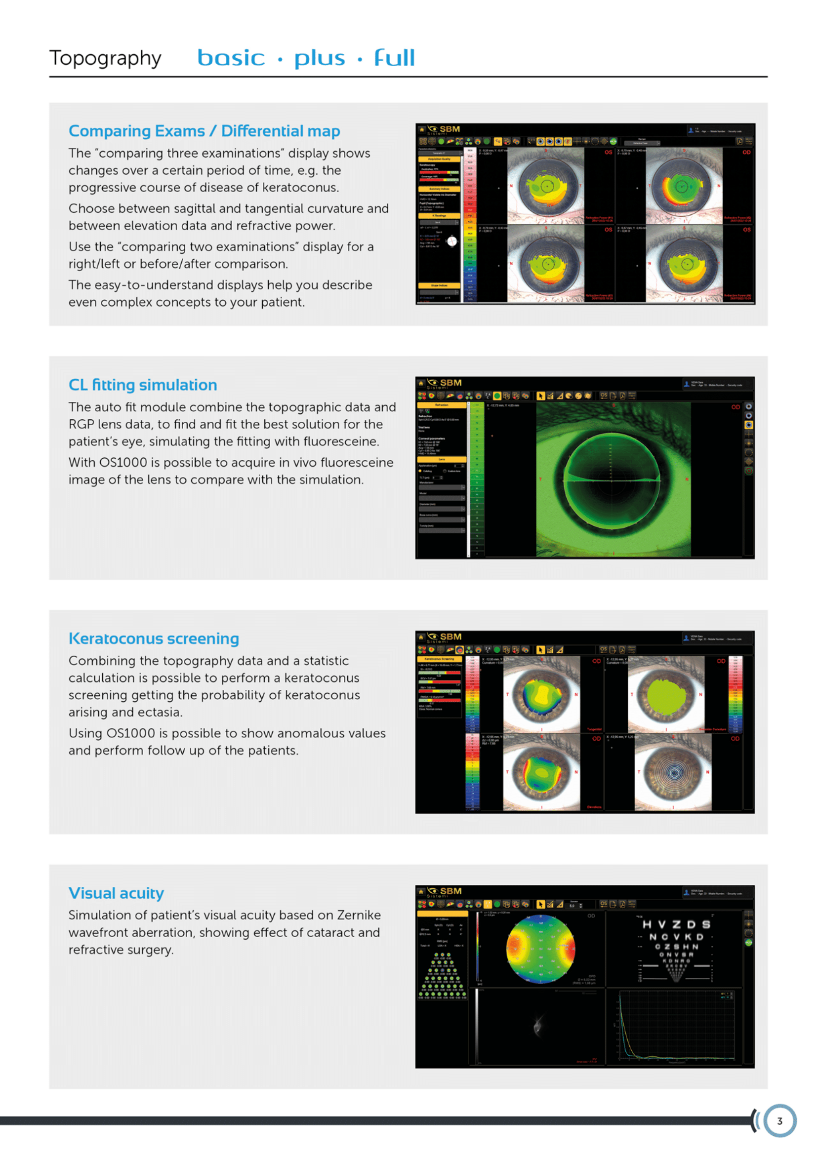 The OS1000 Corneal Topographer by SBM Sistemi is a state-of-the-art diagnostic platform designed for comprehensive ocular surface analysis and dry eye management. Combining advanced corneal topography, interferometry, meibography, and tear film evaluation, the OS1000 provides a complete suite of tests aligned with TFOS DEWS II recommendations. Key features include automatic NIBUT (Non-Invasive Break-Up Time), tear meniscus height measurement, 3D meibography, and keratoconus screening, enabling precise diagnosis and tailored treatment plans. With user-friendly operation, fast acquisition, and detailed reports, the OS1000 enhances patient care by offering accurate, non-invasive assessments and treatment suggestions. Ideal for modern eye care practices, it supports contact lens fitting, pupillometry, and dry eye follow-up, making it a versatile tool for improving ocular health outcomes..