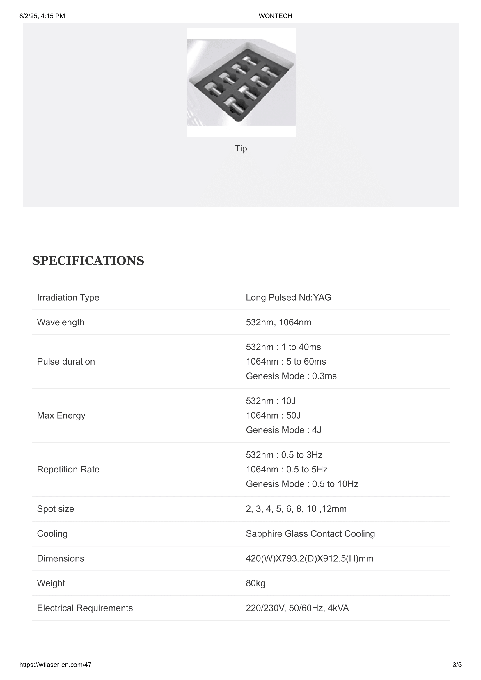 Dual wavelengths: 532 nm (KTP) + 1064 nm (Nd:YAG)
